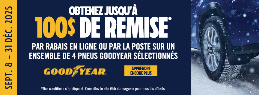 Profitez des nombreuses offres sur notre vaste sélection de marques et modèles de pneus.Du nouveau sur le site, nous avons ajouté un nouveau module d’achat de pneus en ligne. Simple et efficace en quelques clics!